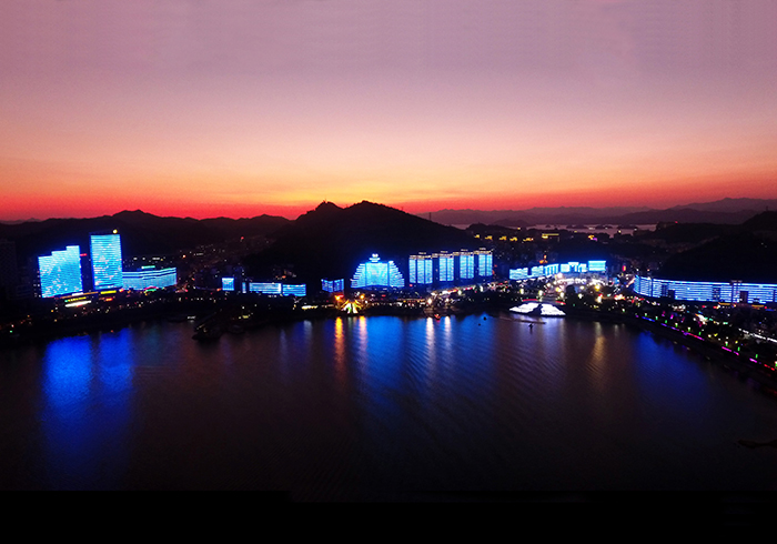獲得“優(yōu)秀智能照明控制”獎的勇電集中控制系統(tǒng),可以通過專業(yè)的數據分配服務器和組建高速網絡,對海量數據進行分組、高速傳輸和分發(fā),無需預先處理,即可實時播放視頻源,一鍵控制建筑群夜景燈光展現,勇電千島湖城中湖區(qū)域樓體聯(lián)動等項目皆有運用。