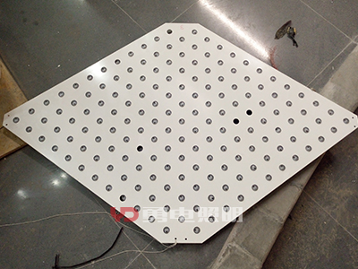 5、沖孔板內(nèi)透安裝:采用整板沖孔這種方式來安裝led點光源的時候,通常都是在鋁板或者不銹鋼板上根據(jù)計算好的位置來進行沖孔,然后再把led點光源從板材的背面穿過來,將其接好線就算安裝完成,這種整板沖孔的安裝方式也是目前比較常用的。