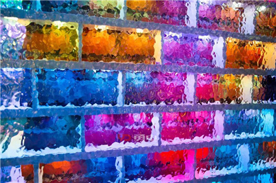 燈光描繪的色塊在空間中閃爍,仿佛水晶般晶瑩剔透,琉璃色時(shí)空交替,與瓦廠的時(shí)空融為一體。