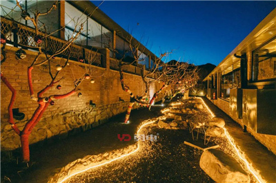 勇電燈光產(chǎn)品服務(wù)于北京鄉(xiāng)村生態(tài)藝術(shù)展“水晶墻”、“靈動(dòng)”兩處燈光藝術(shù)設(shè)置,燈光設(shè)計(jì)充分融合當(dāng)?shù)靥厣兀霉馍换ゾ幙椝囆g(shù)語(yǔ)言,勾勒出瓦廠酒店空間的視覺(jué)重點(diǎn),與明朗的色調(diào)契合,在照明功能及美學(xué)尺度上達(dá)成了絕美平衡。