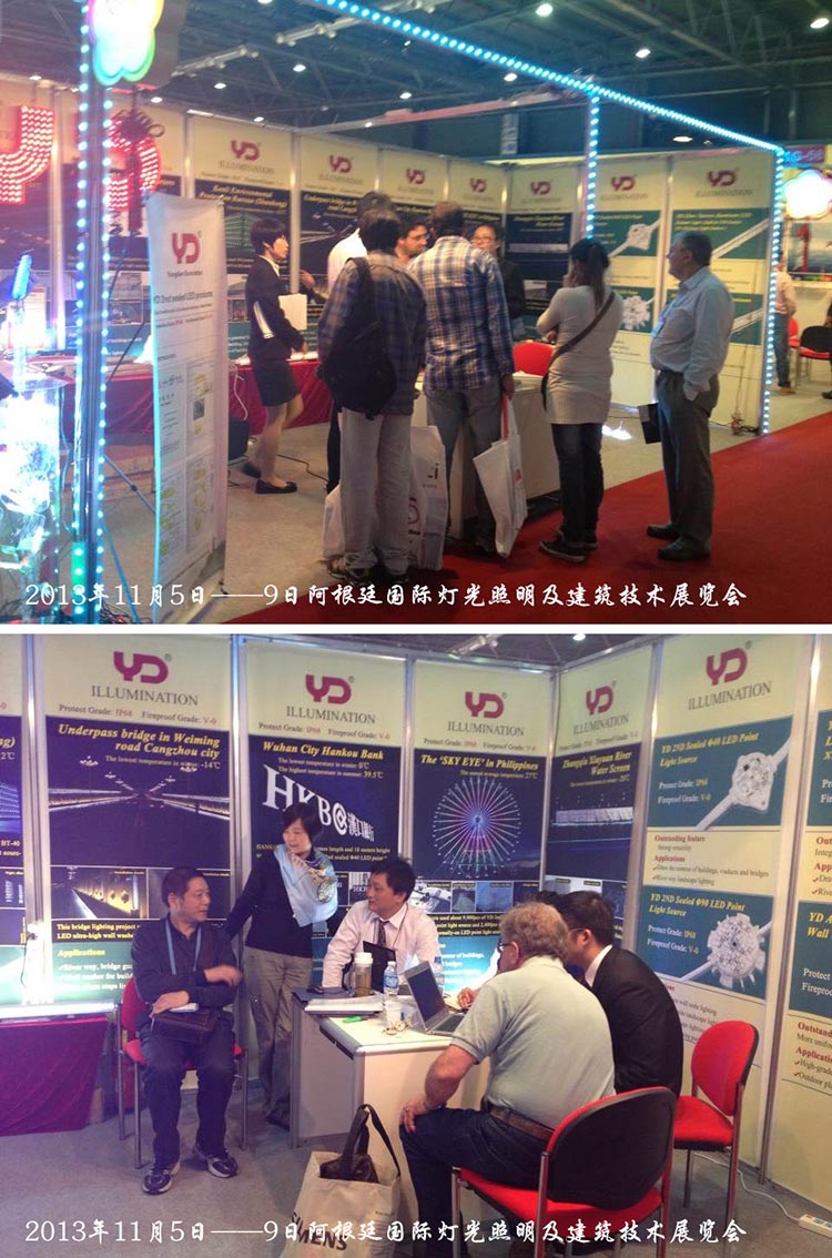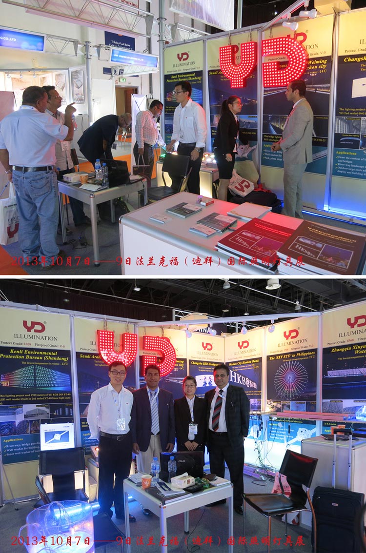 2013年是美好的照明年。我司下半年分別參與了“法蘭克福(迪拜)照明展”、“香港國際秋季燈飾展”、“阿根廷國際燈光照明及建筑技術展覽會”、“俄羅斯國際照明及照明技術展覽會”、“印度國際LED照明展覽會”;其中印度展將于12月19-21日在新德里拉開帷幕,歡迎蒞臨參觀。