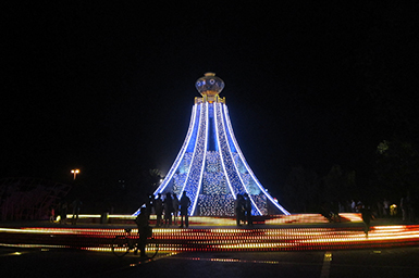 “櫻花湖之戀”是一座環(huán)形雕塑,坐落于威海櫻花湖體育公園。雕塑內(nèi)部凹槽上,安裝12條由勇電定制二次封裝70線條燈組成的光帶,光帶沿著環(huán)形輪廓鋪設(shè),夜間亮燈后將雕塑變身為一個(gè)巨大的色彩斑斕的變色環(huán)。而這些光帶與地面上的單車相連,可以通過(guò)傳感器將單車踩踏的速率轉(zhuǎn)換成控制信號(hào),來(lái)改變燈光的變化形式和變化速度。燈光也就隨著騎車人車速的變化而變化。