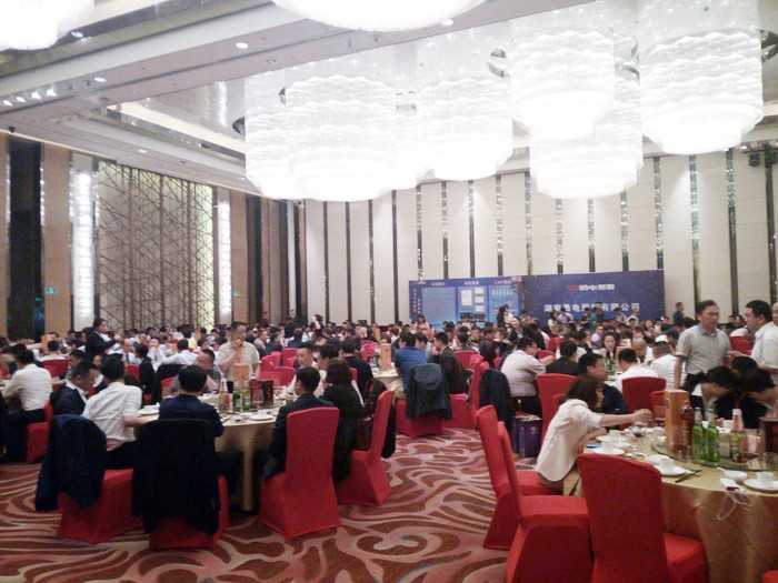 ▲ 一天的會議之后,湖南勇電公司總經(jīng)理朱佳榮在歡聚晚宴上致辭