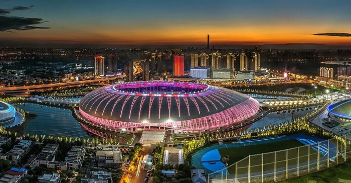 臨水而建、依水而起,占地面積8萬平方米,觀眾座席6萬個(gè),建筑外形狀如水滴,能夠滿足國際足球、世界田徑比賽需求的水上體育館。