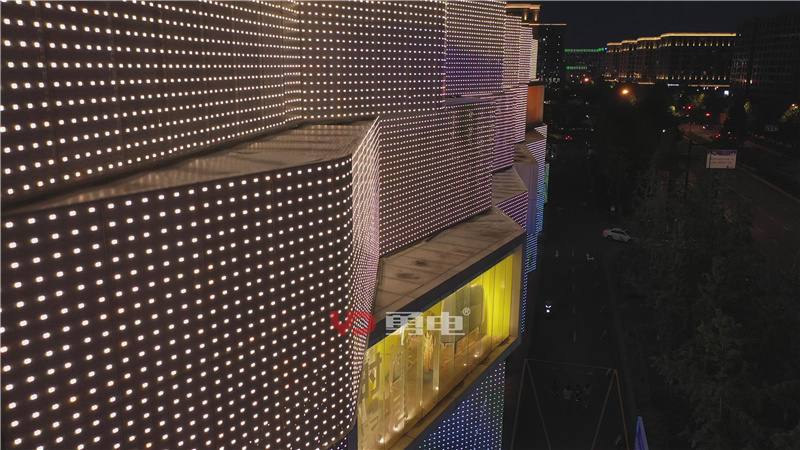 采用勇電高品質(zhì)LED燈具,于商務(wù)用地處打造全彩媒體屏,突出蔣村商圈的標(biāo)志點(diǎn)、視線走廊,打造高熱度打卡點(diǎn),聚集人氣。住宅區(qū)則采用柔光燈光設(shè)計,表現(xiàn)住宅建筑頂部天際線,局部以側(cè)面投光的形式表現(xiàn),提升小區(qū)氛圍和品質(zhì)感。
